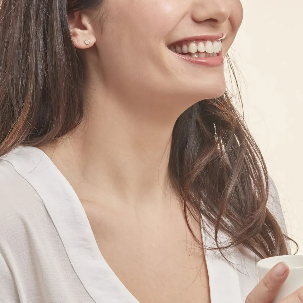 Boucles D’oreilles Or Jaune 375/1000 Puces Formes Pastilles Pavées Oxydes De Zirconium Serti Clos