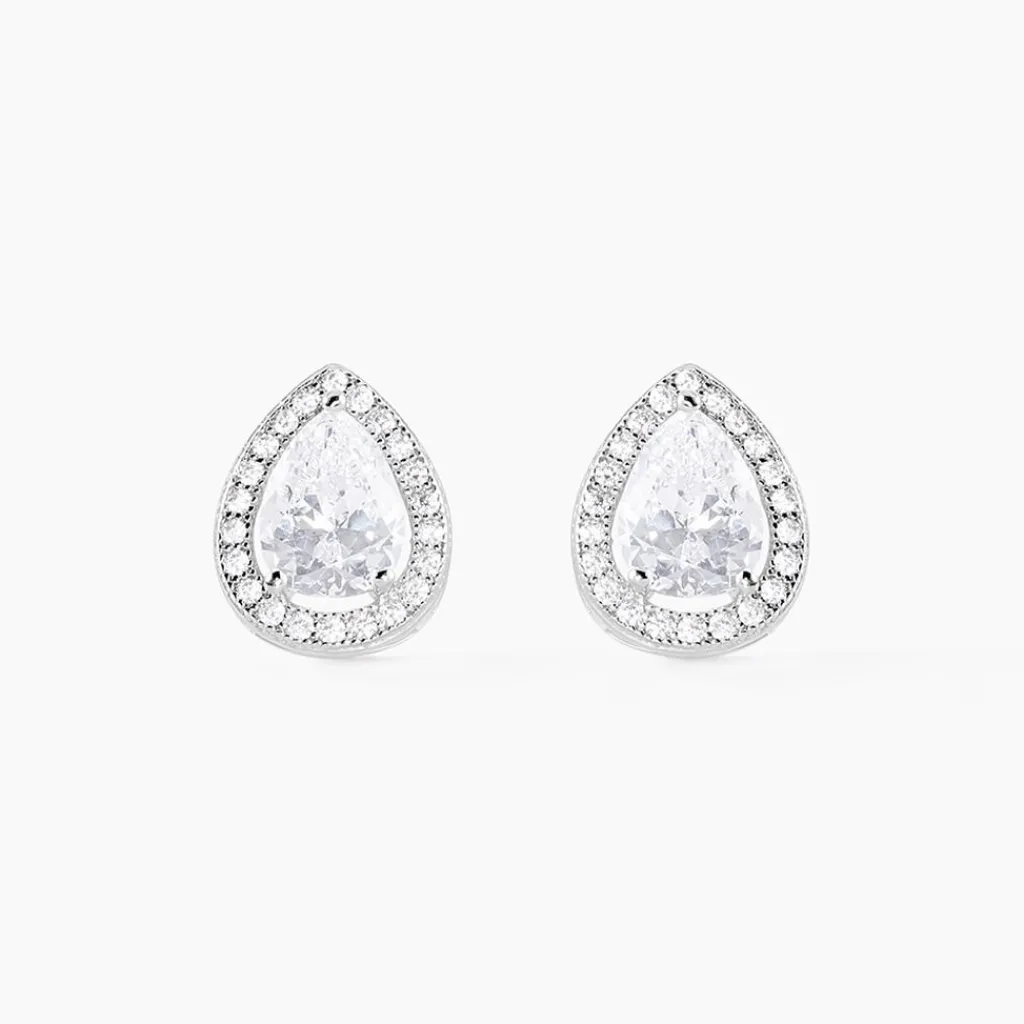 Boucles D’oreilles Argent Blanc 925/1000 Oxydes De Zirconium Central Formes Poires Entourage Oxydes De Zirconium