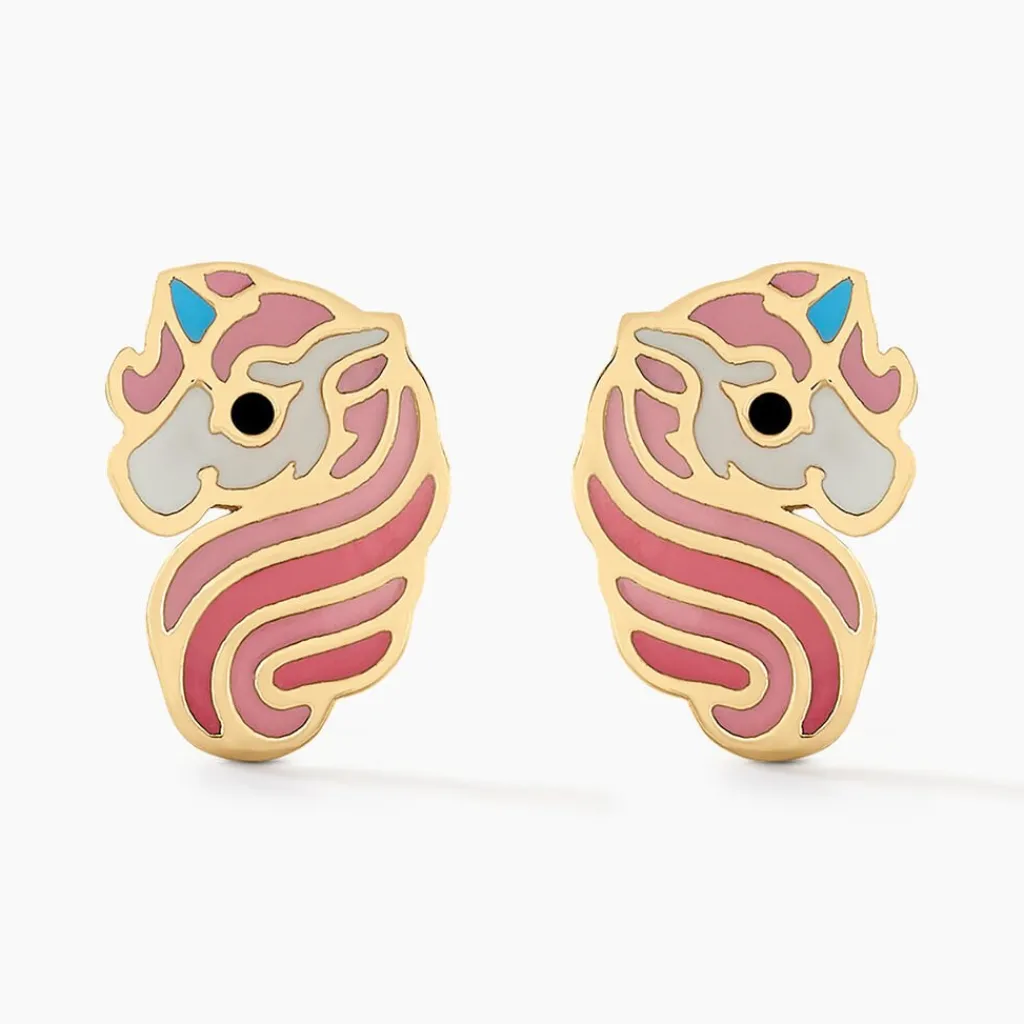 Boucles D’oreilles Or Jaune 375/1000 Puces Licornes