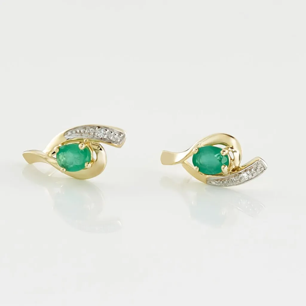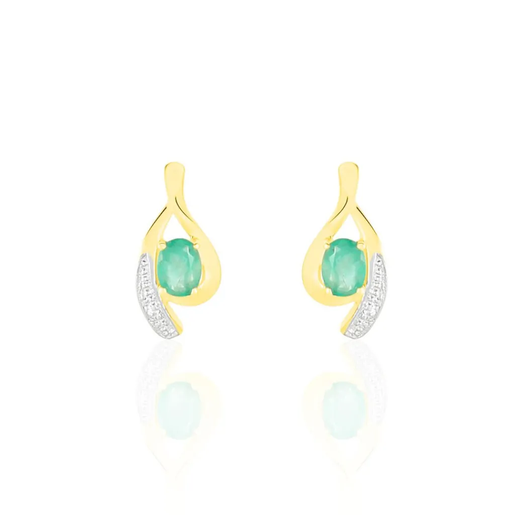 Boucles D’oreilles Or Jaune 375/1000 Sagesse Emeraudes Et Diamants