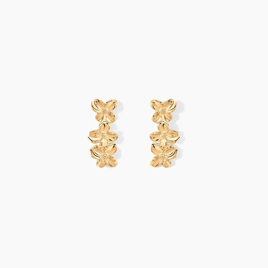 Boucles D’Oreilles Puces Plaqué Or Jaune Fleurs
