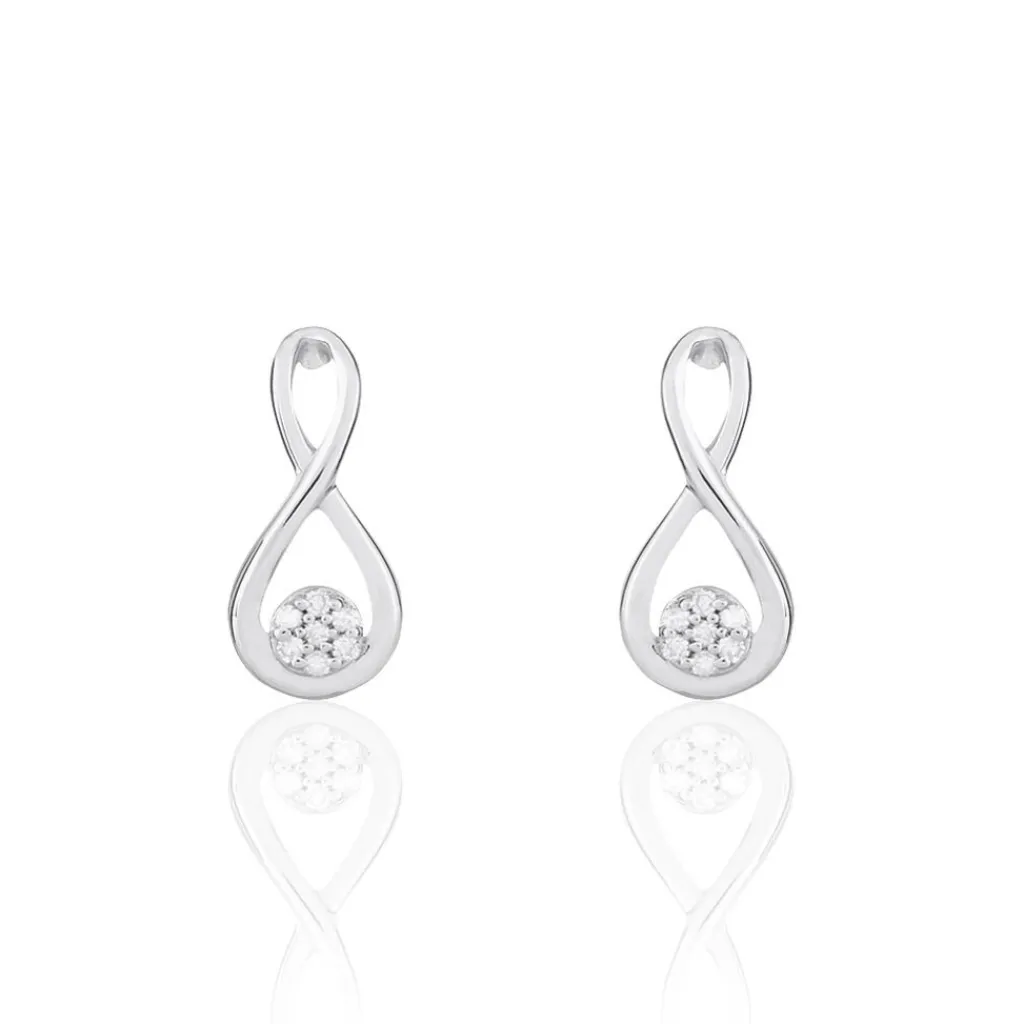 Boucles D’oreilles Or Blanc 375/1000 Forme Goutte Huit Diamants 42cm