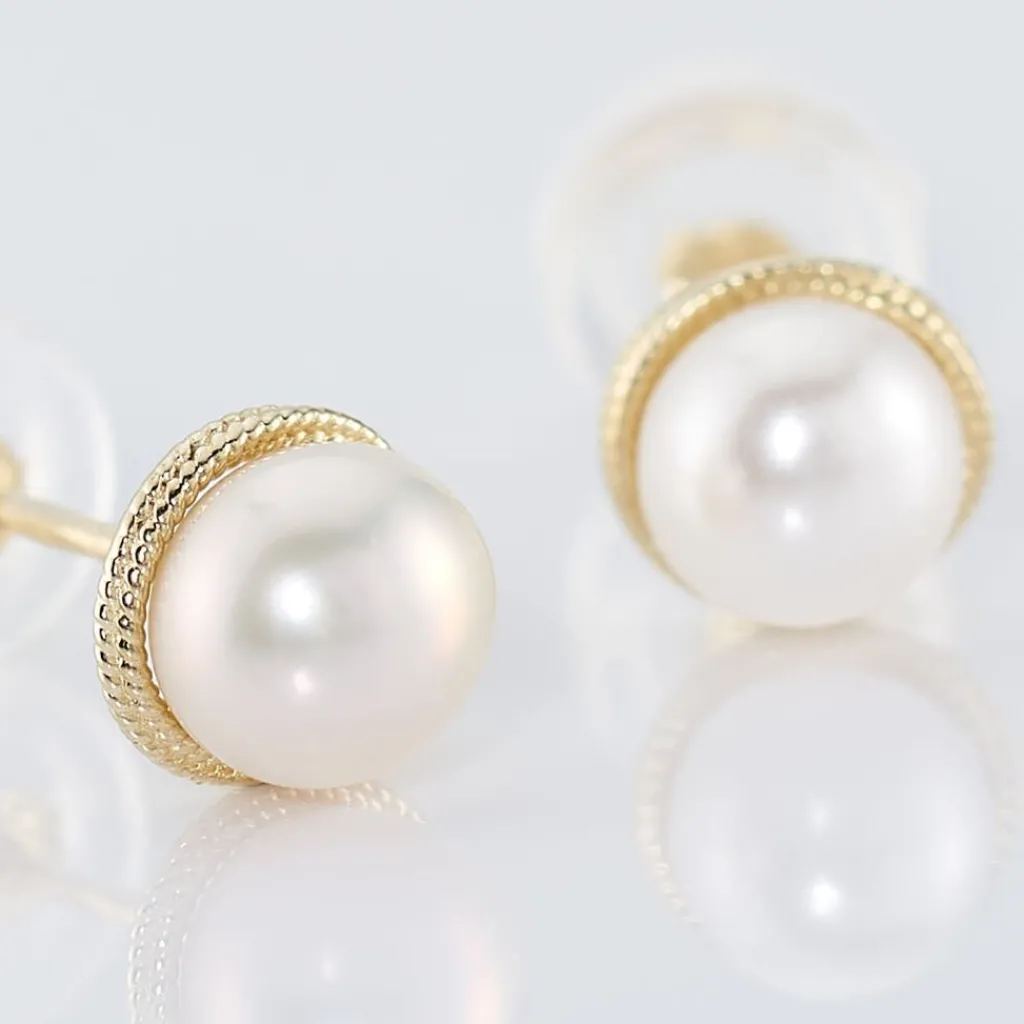 Boucles D’oreilles Or Jaune 375/1000 Perles De Cultures Nacres Boutons 5mm