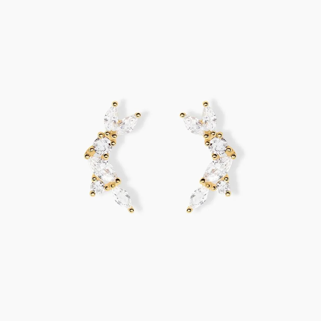 Boucles D’Oreilles Puces Or Jaune 375/1000 Oxyde De Zirconium Navettes Sertis 2 Griffes