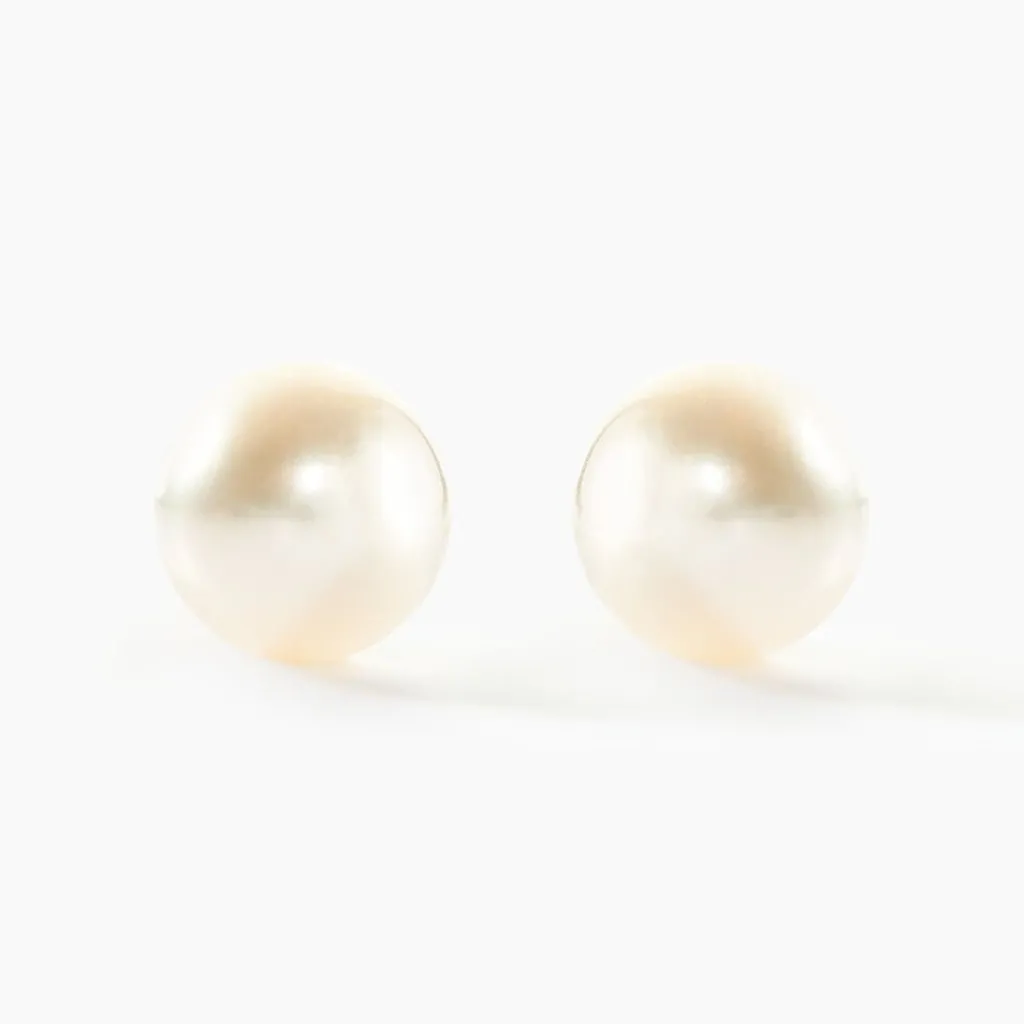 Boucles D’oreilles Or Jaune 375/1000 Perles De Culture 6.5/7mm Rondes