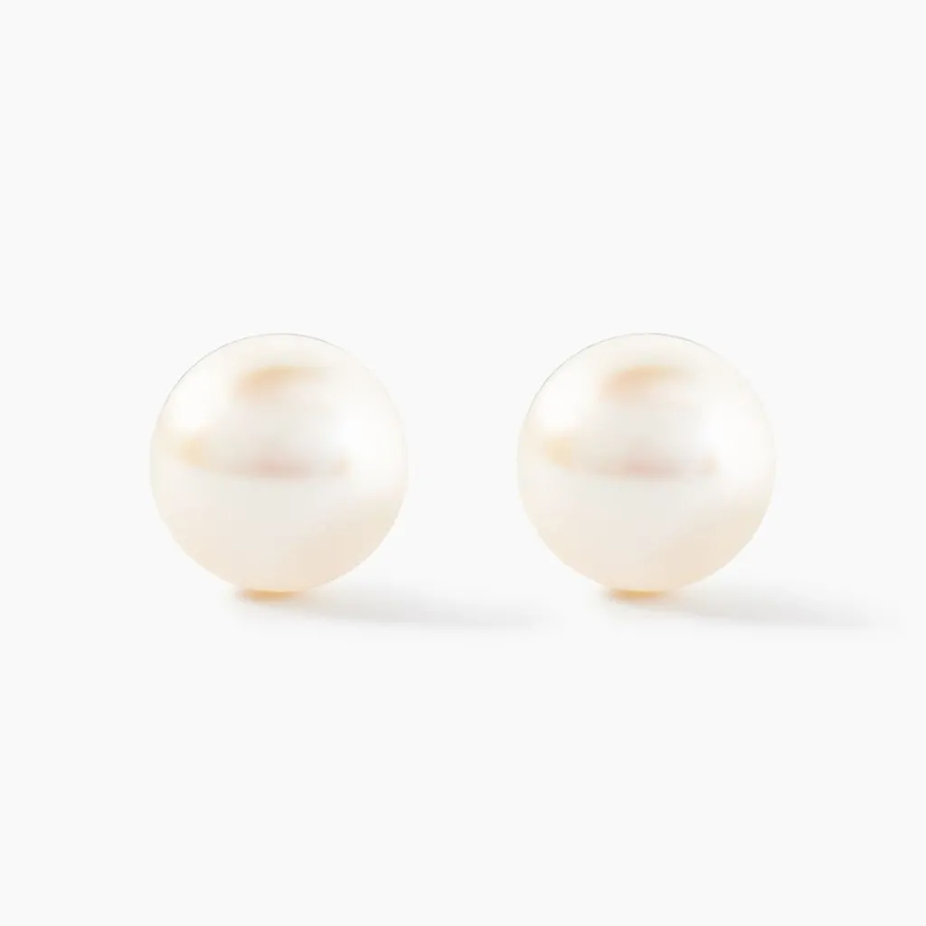 Boucles D’oreilles Or Jaune 375/1000 Perles De Culture Rondes 9/9.5mm