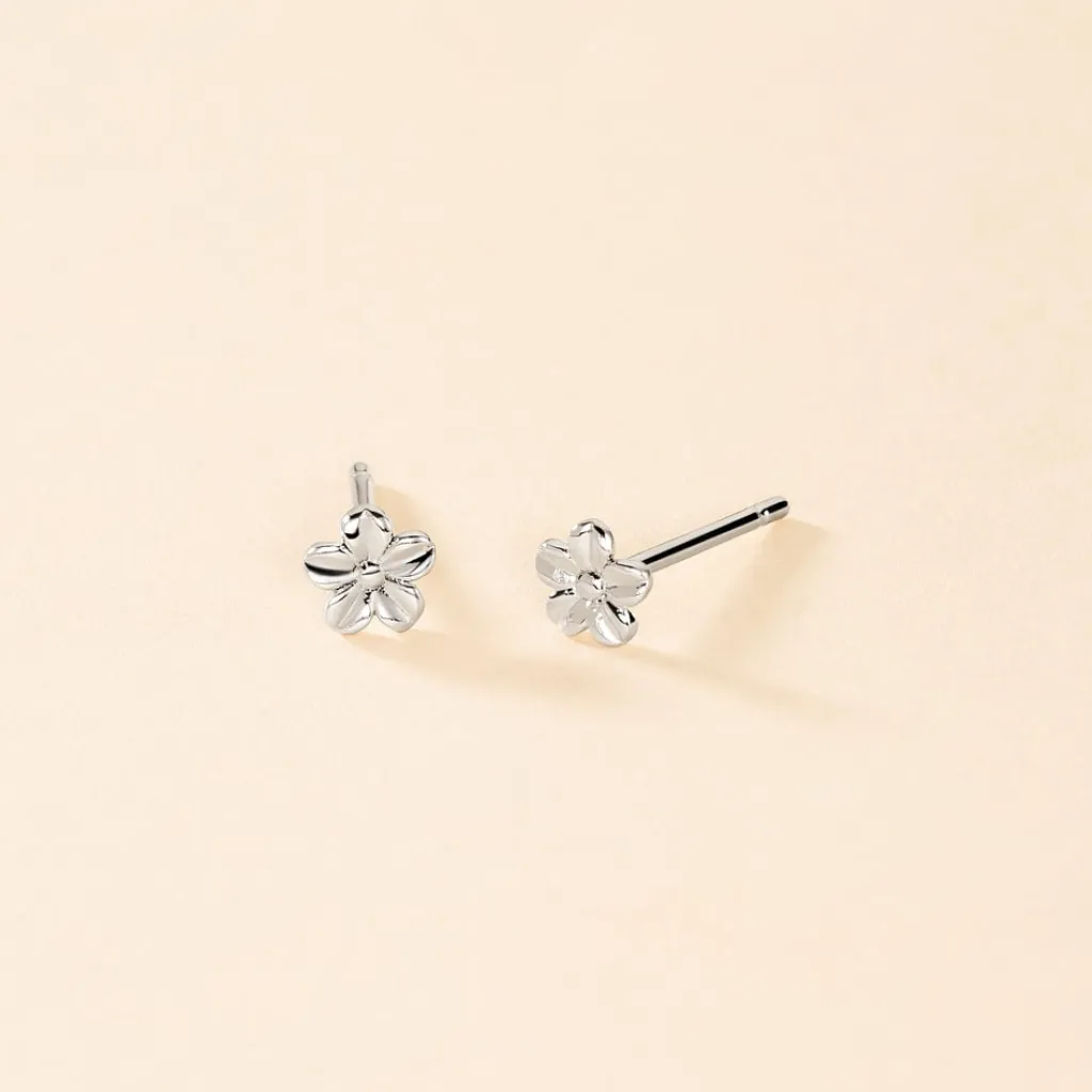 Boucles D’oreilles Puces Argent Blanc 925/1000 Fleurs