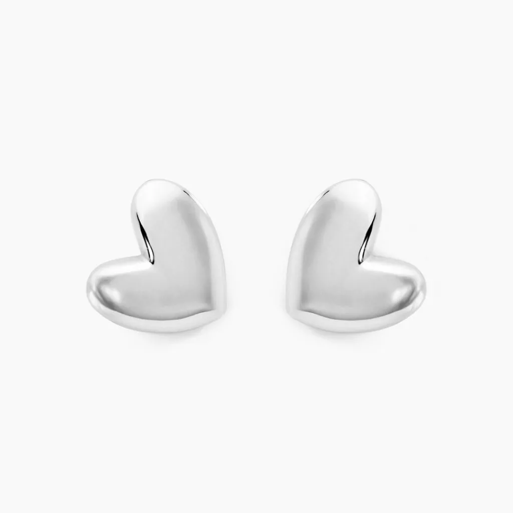 Boucles D’oreilles Puces Argent Blanc 925/1000 C艙ur Bombé