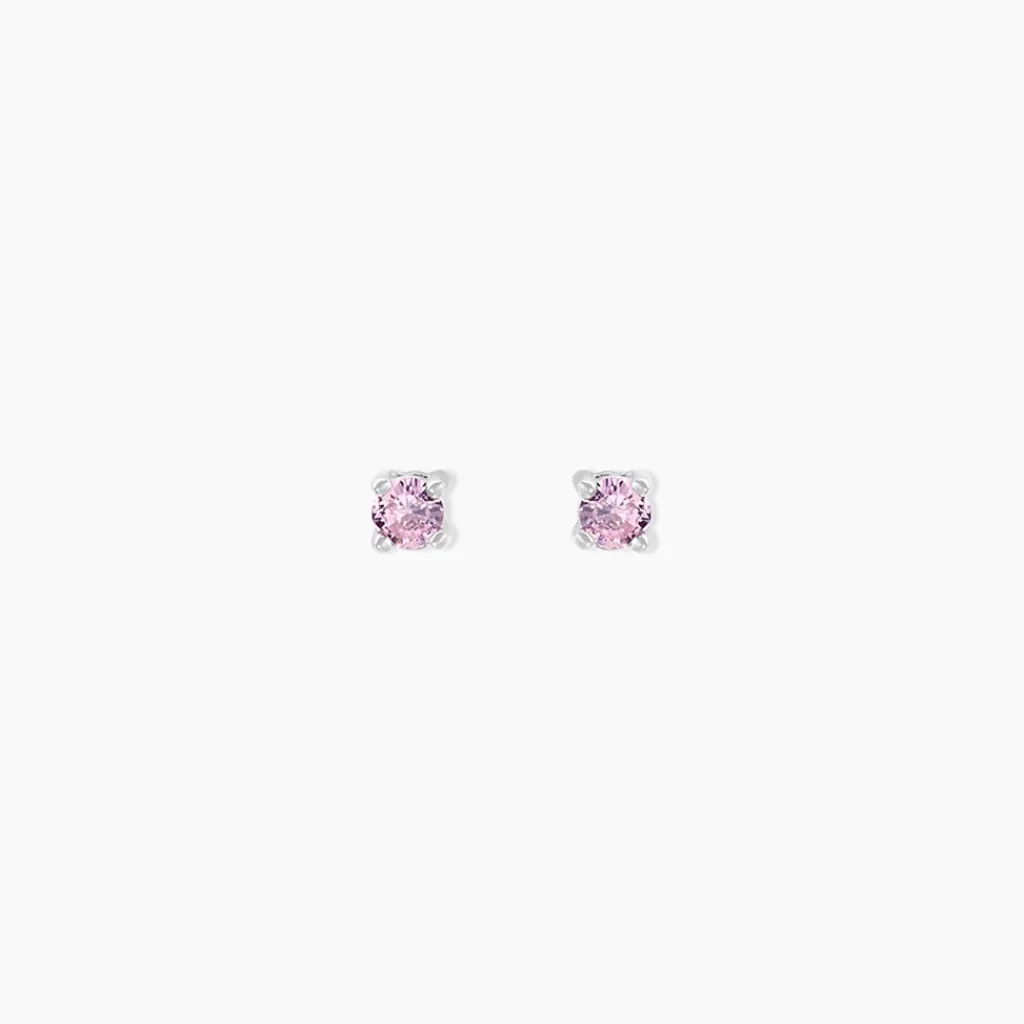 Boucles D’oreilles Puces Argent Blanc 925/1000 Oxydes De Zirconium Roses Serti 4 Griffes