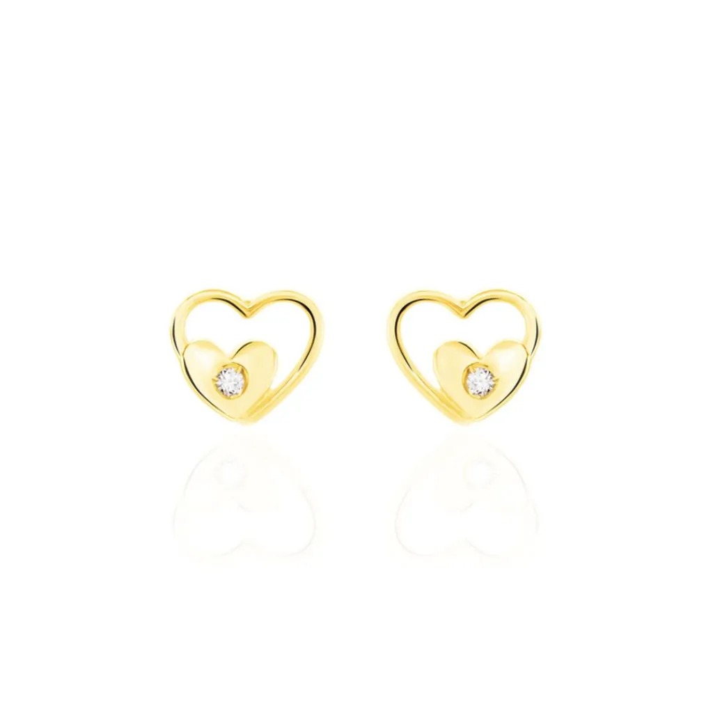 Boucles D’oreilles Or Jaune 375/1000 C艙ur Et Oxyde