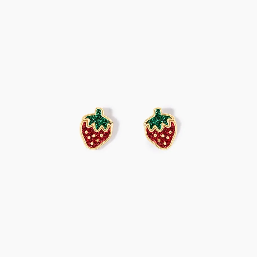 Boucles D’oreilles Or Jaune 375/1000 Motif Fraise 14cm