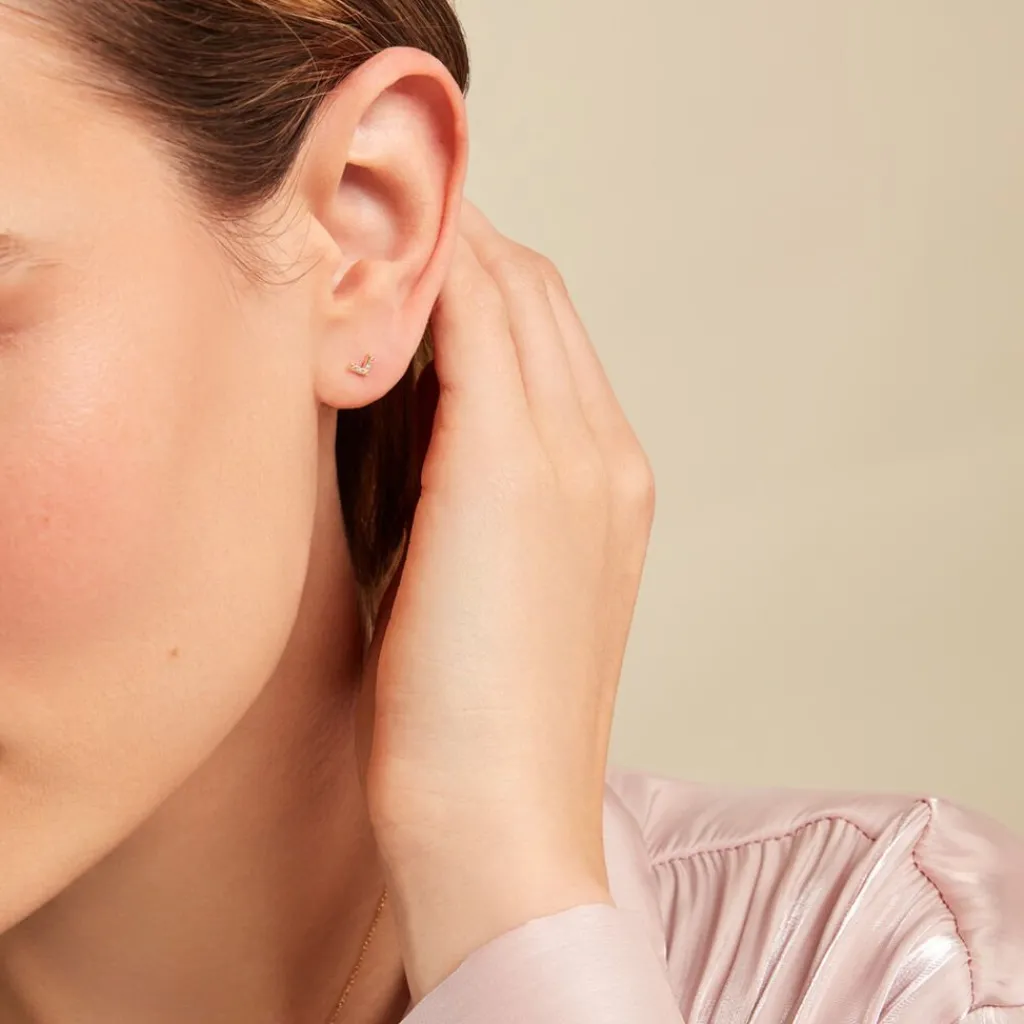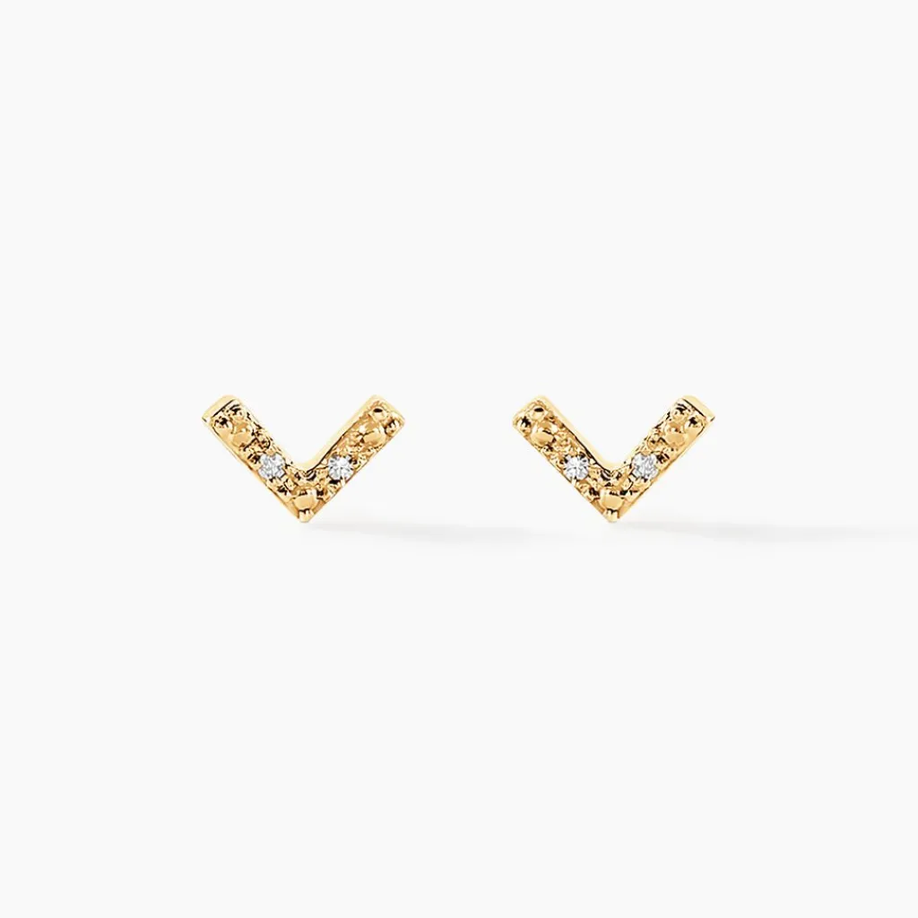 Boucles D’oreilles Puces Or Jaune 375/1000 Motif Aile De Mouette Pavage Diamants