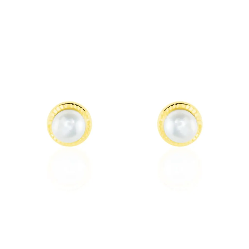 Boucles D’oreilles Or Jaune 375/1000 Puces Perles De Culture Contour Diamante