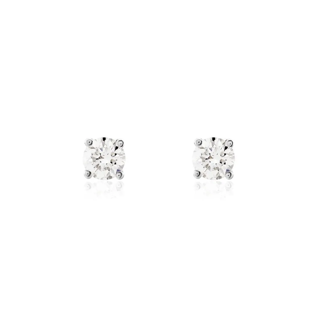Boucles D’oreilles Platine 950/1000 Puces Diamants 0.30cts Sertis 4 Griffes Systemes Alpas