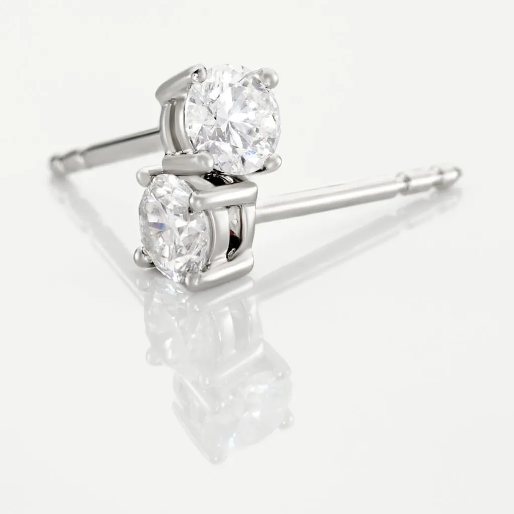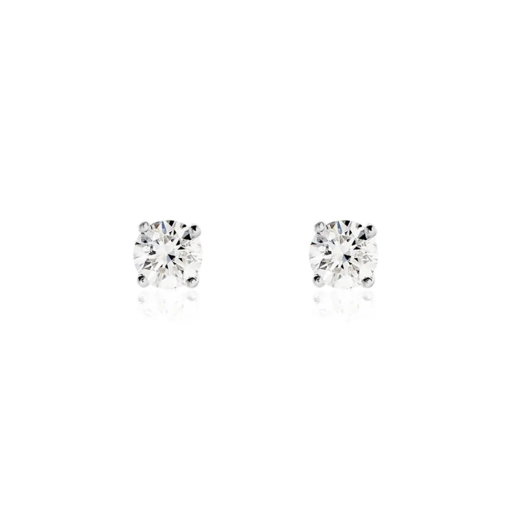 Boucles D’oreilles Platine 950/1000 Puces Diamants 0.40cts Sertis 4 Griffes Systemes Alpas