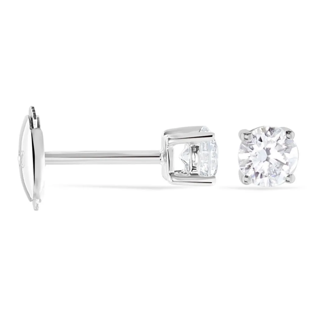 Boucles D’oreilles Platine 950/1000 Puces Diamants 0.50cts Sertis 4 Griffes Systemes Alpas