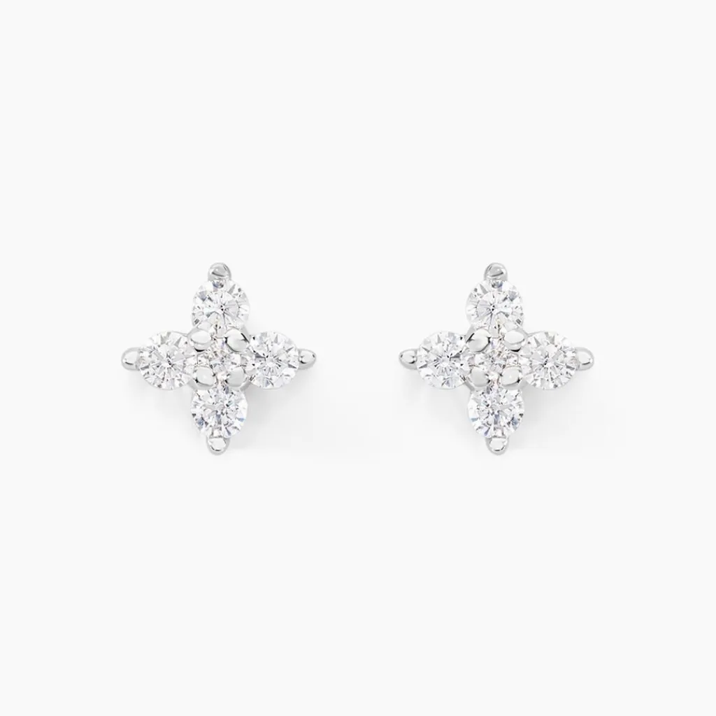 Boucles D’oreilles Or Blanc 375/1000 Puces Oxydes De Zirconium Motifs Trèfles