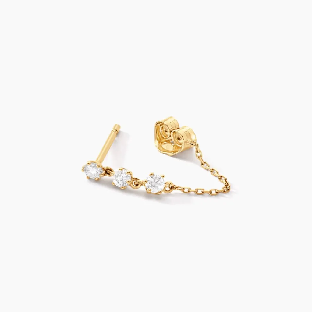 Boucles D’oreilles Or Jaune 375/1000 Trilogie Diamants Synthetiques 0.28cts Sertis Griffes Avec Chaine
