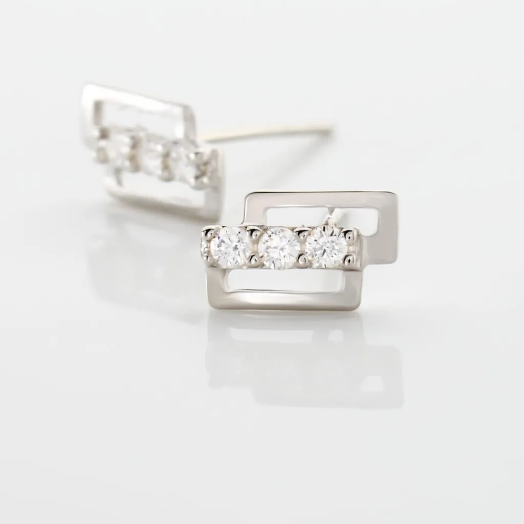 Boucles D’oreilles Or Blanc 375/1000 Avec Barrette Oxydes De Zirconium