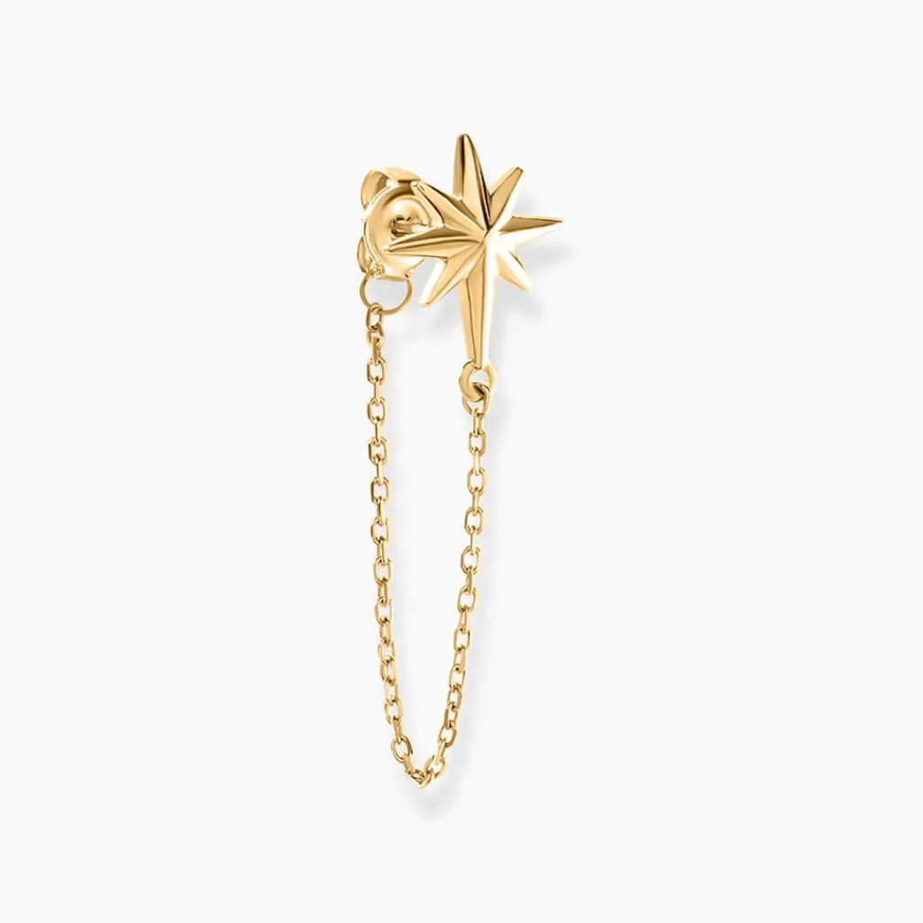 Bijou D’Oreille Unitaire Or Jaune 375/1000 Etoile Avec Chaine