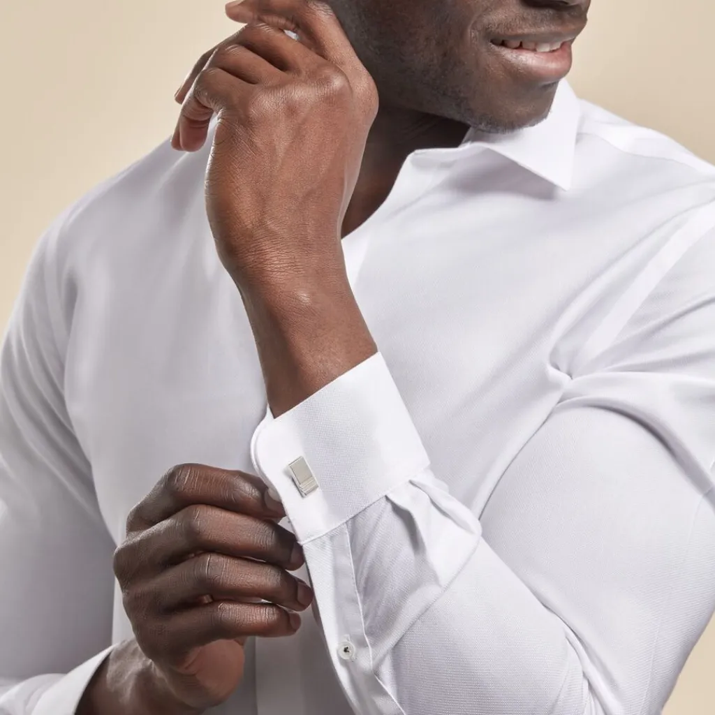 Boutons De Manchette Acier Blanc Rectangles Double Coche