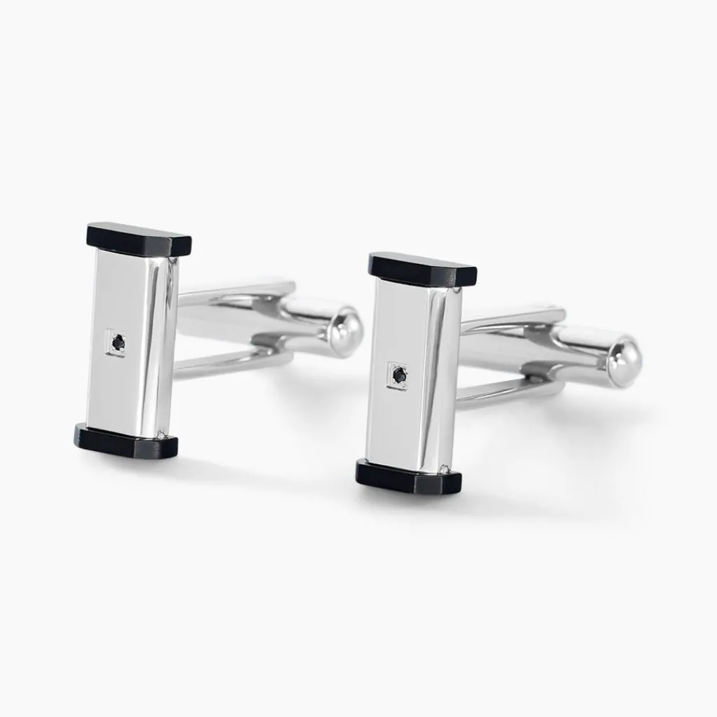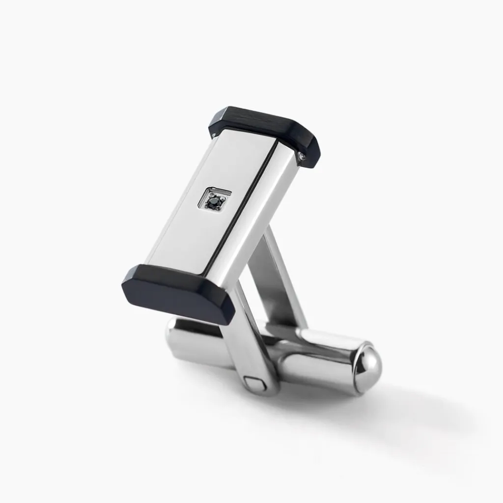 Boutons De Manchette Acier Inoxydable Bicolore Oxyde De Zirconium Noir
