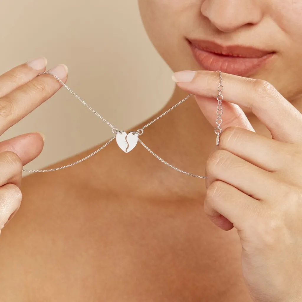 Bracelet Argent Blanc 925/1000 C艙ur Sécable Amitié / Amour Double Maille Forçat 18cm