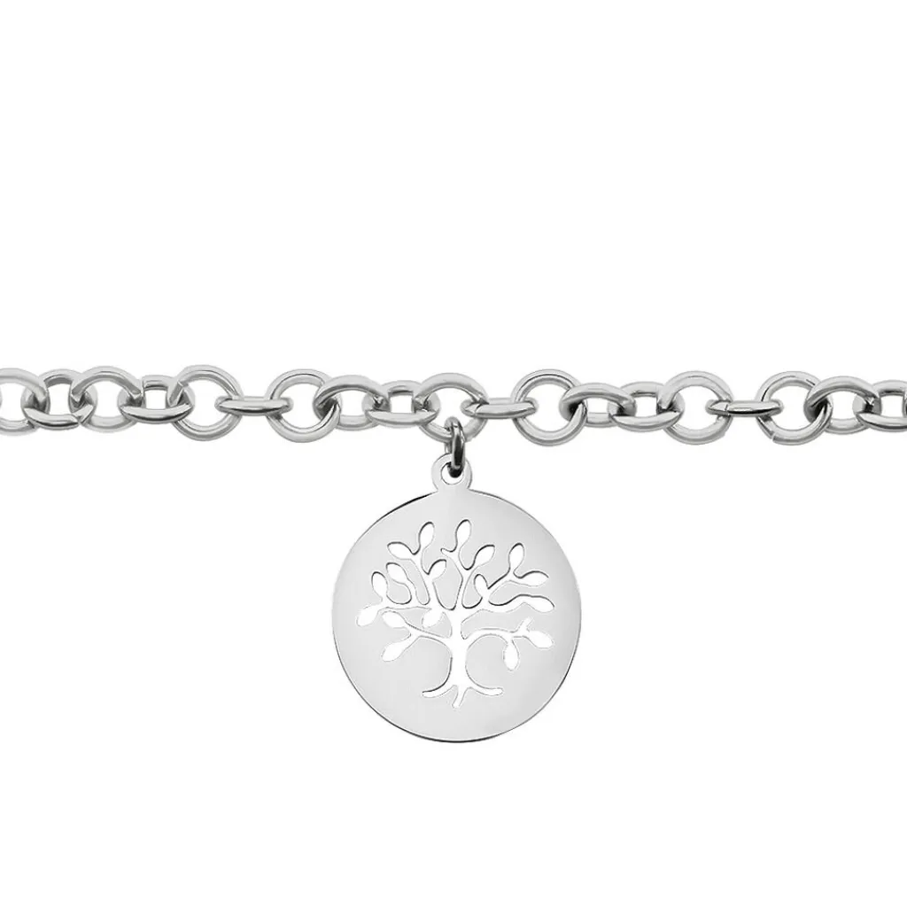 Bracelet Acier Blanc Pendentif Arbre De Vie Maille Forçat Epaisse 21cm