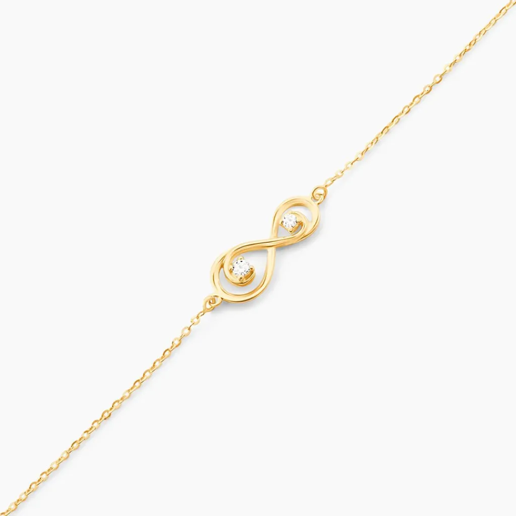 Bracelet Or Jaune 375/1000 Forme Infini Deux Oxydes Blancs 18cm