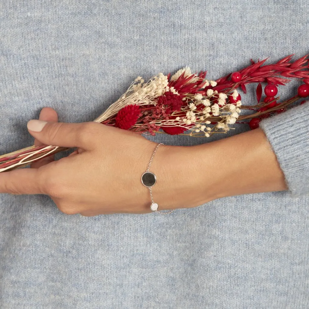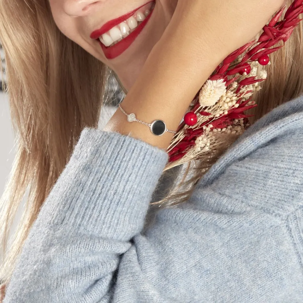 Bracelet Argent 925/1000 Ceramiques Noires Et Oxyde 19cm