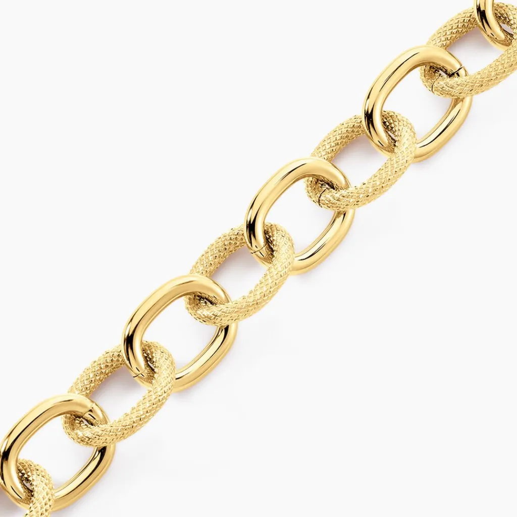 Bracelet Acier Inoxydable Jaune Maille Alternee Maillons Lisses Et Diamantes 22cm