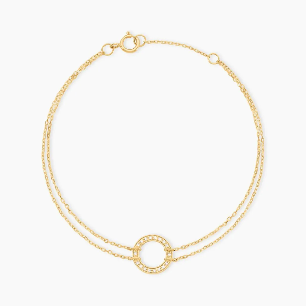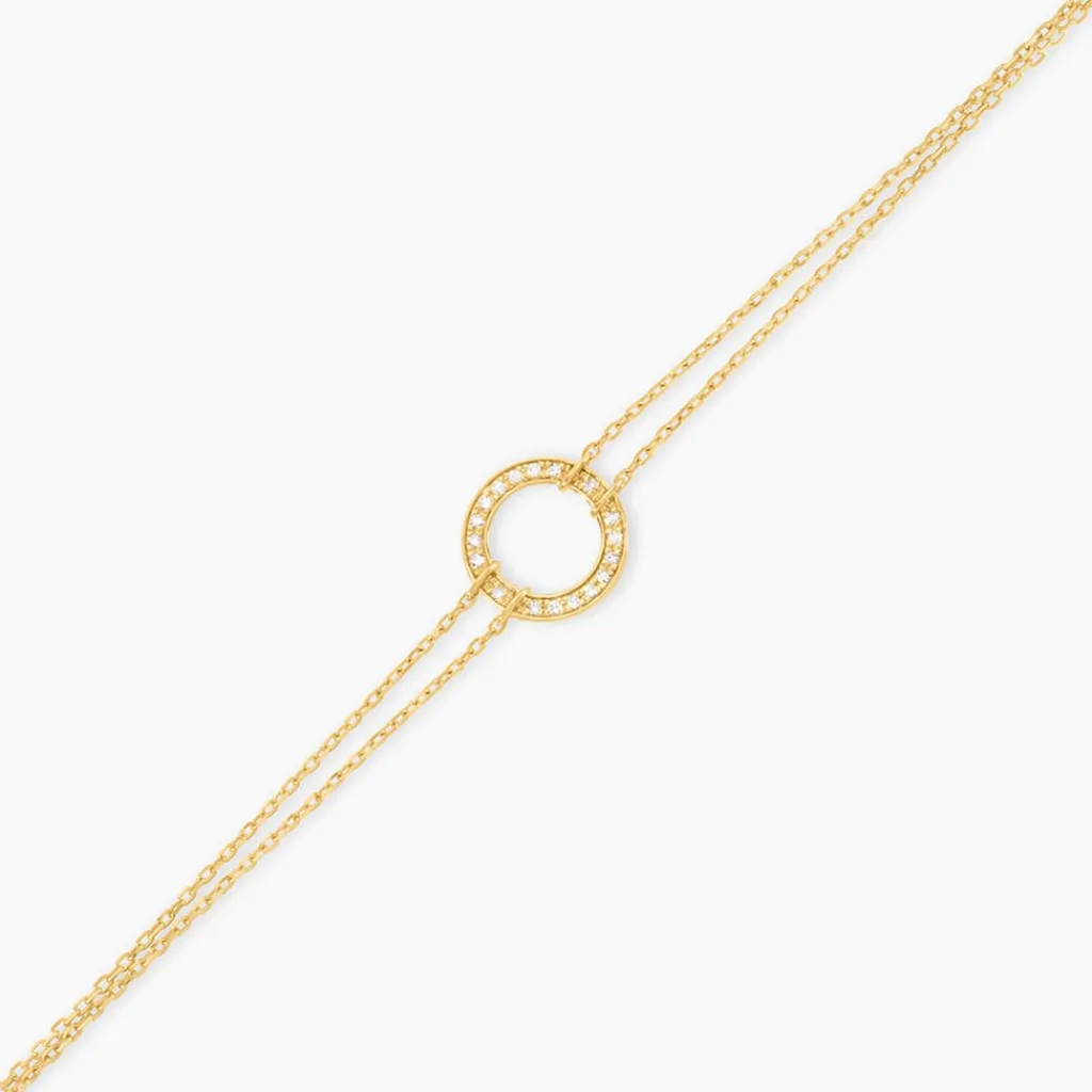 Bracelet Or Jaune 375/1000 Cercle Ajoure Pavage Diamant Maille Forcat 16+2Cm