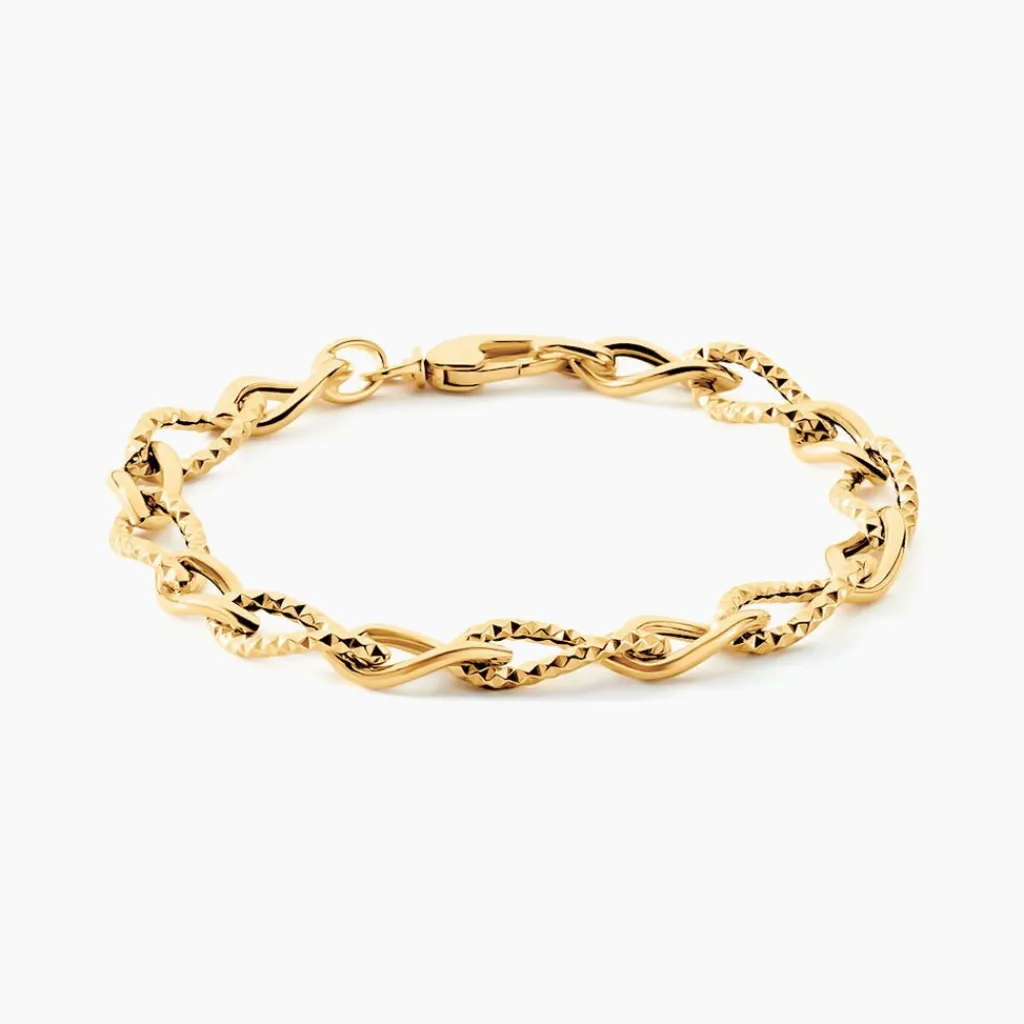 Bracelet Or Jaune 750/1000 Maille Fantaisie Effet Martele Largeur 8mm Maille Forcat 20cm