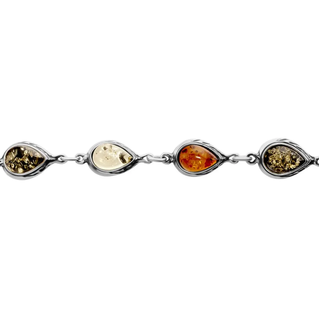 Bracelet Argent Blanc 925/1000 Ambres Poires Multicolores Vert/miel/cognac 18cm