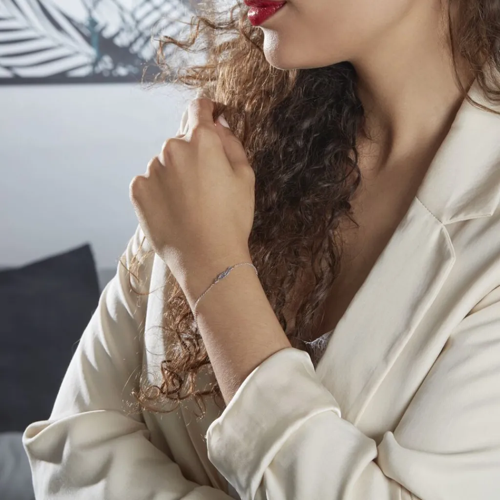 Bracelet Argent Blanc 925/1000 Feuille Maille Forcat 18cm