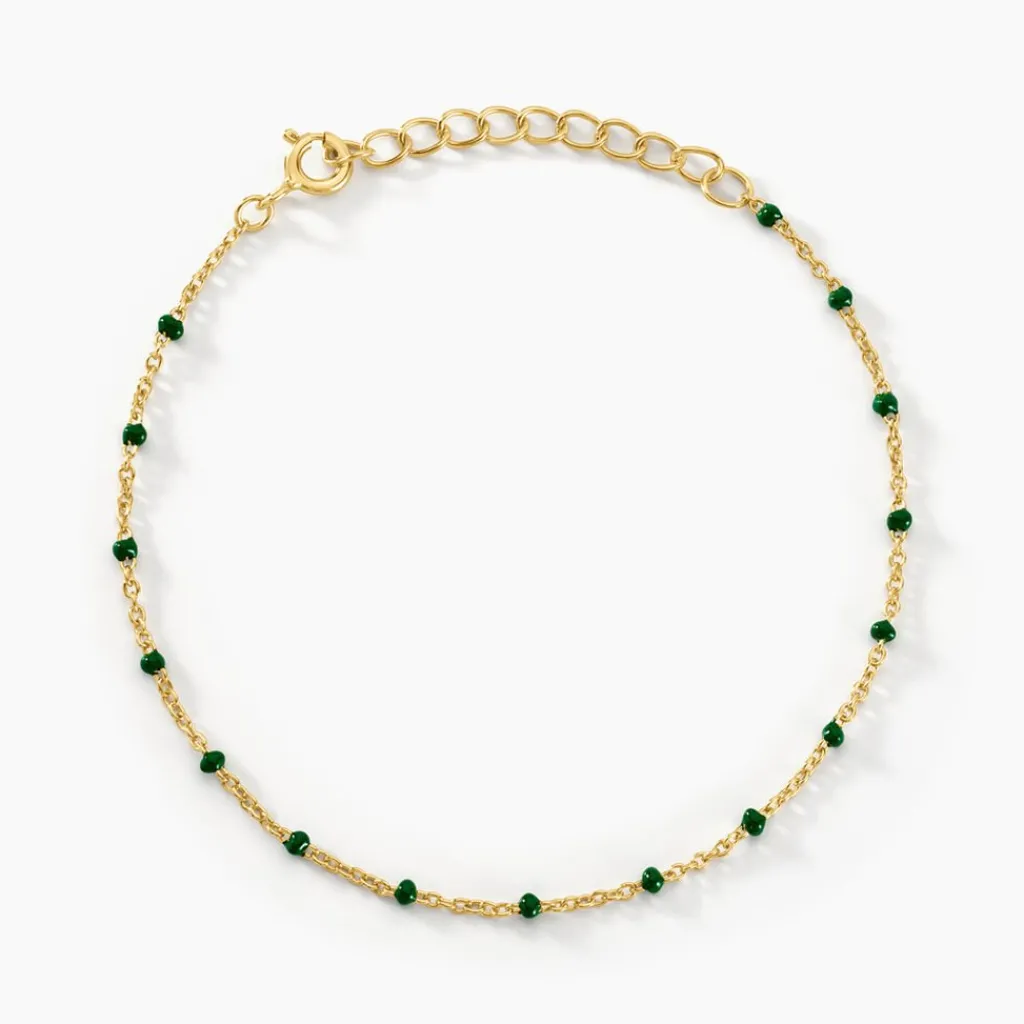 Bracelet Argent Dore 925/1000 Email Vert 18.5cm