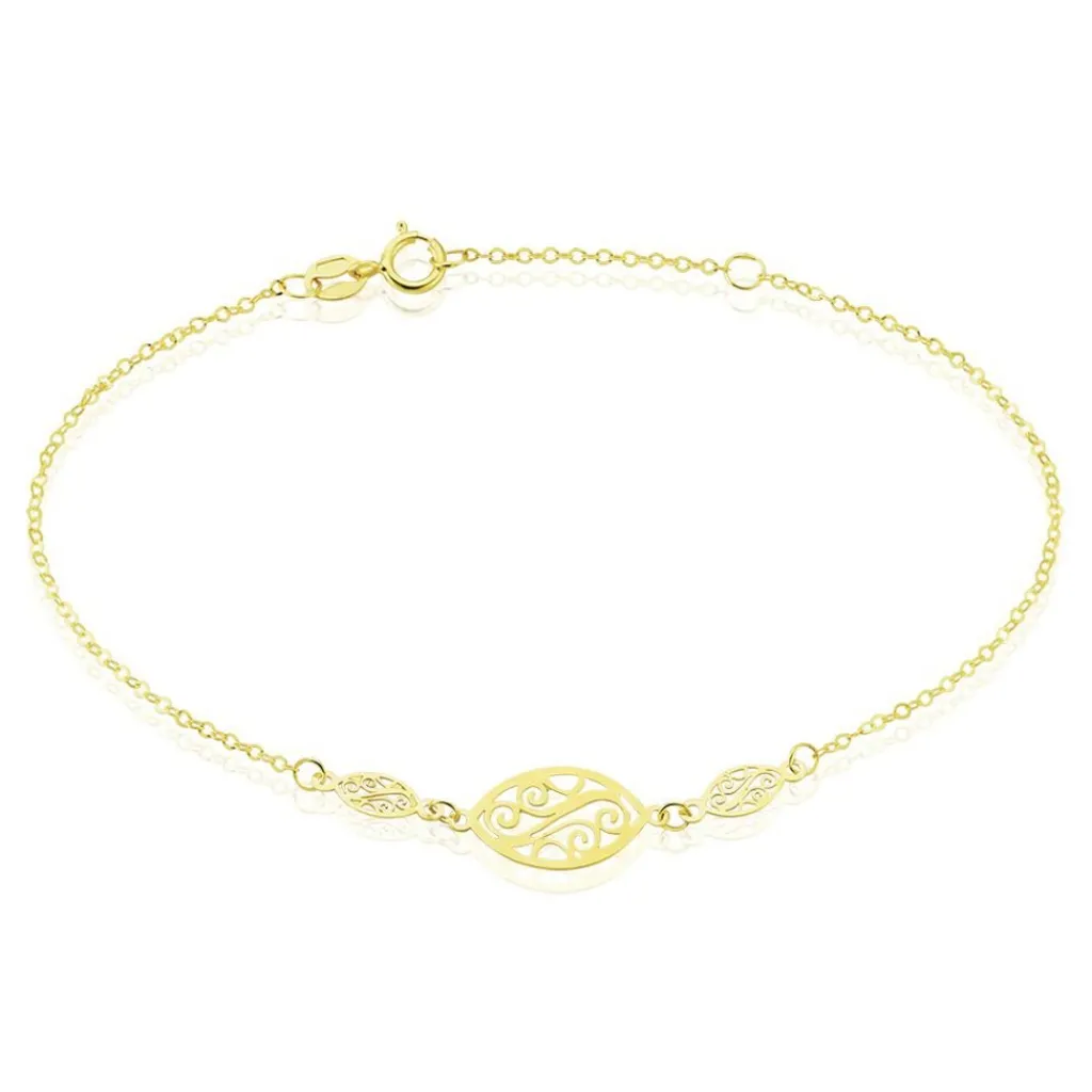 Bracelet Or Jaune 375/1000 3 Filigranes Maille Forcat Ronde 16+2cm