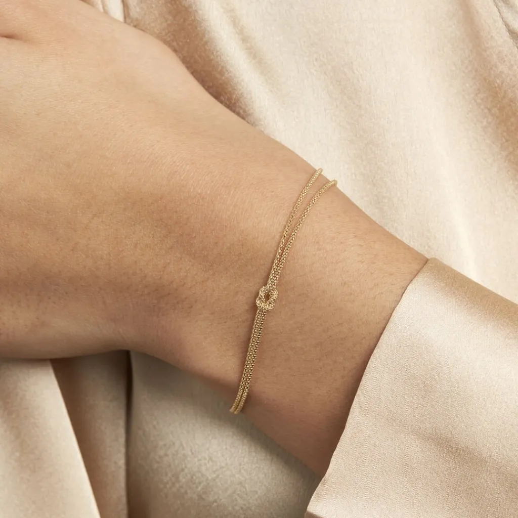 Bracelet Or Jaune 375/1000 Motif N艙ud Maille Pop Corn 18cm