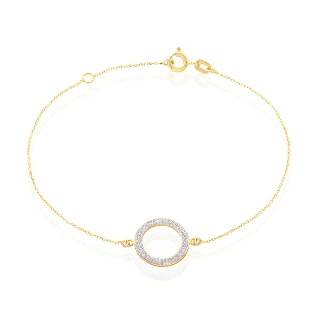 Bracelet Or Jaune 375/1000 Cercle Ajoure Glitter Argente Maille Jaseron 18cm
