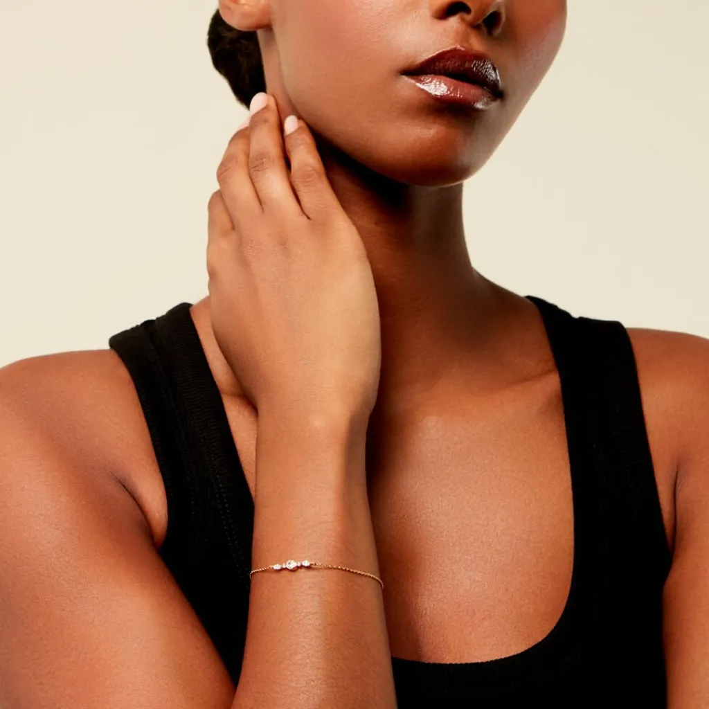 Bracelet Plaqué Or Jaune Oxyde De Zirconium Ovale Serti Clos Et Oxydes Navettes Maille Forcat 16+3Cm
