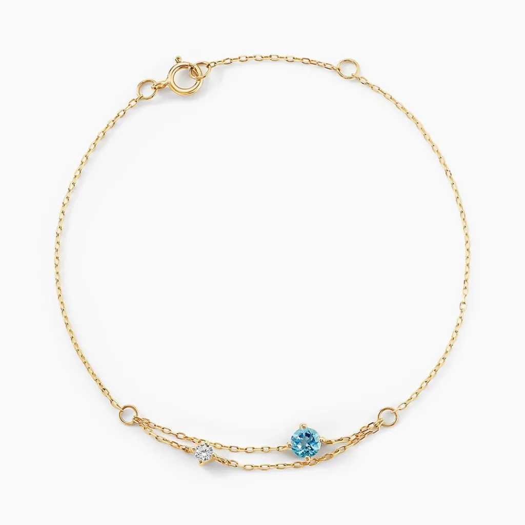 Bracelet Or Jaune 375/1000 Topaze Sky Et Oxyde De Zirconium Maille Forcat 16+2cm