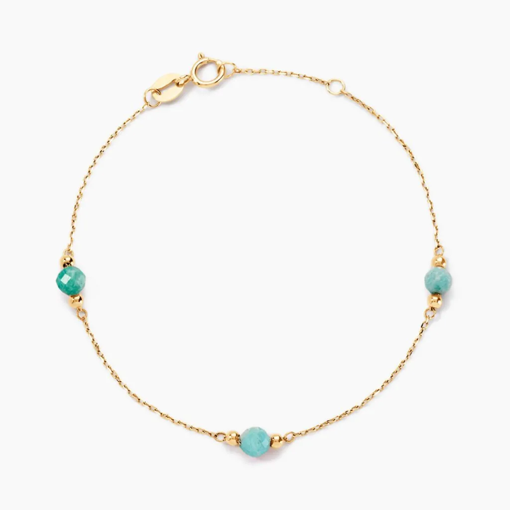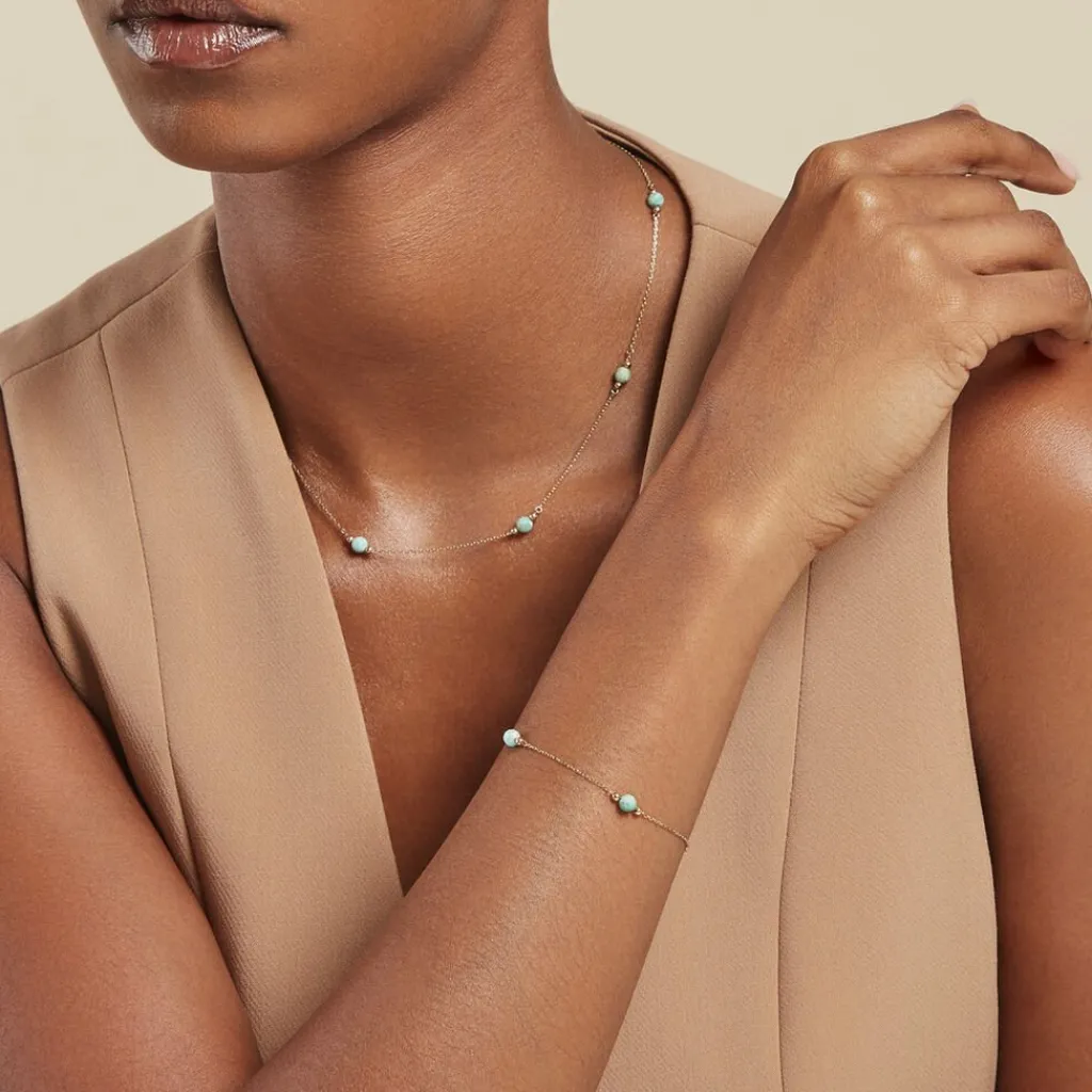 Bracelet Or Jaune 375/1000 Turquoises Et Boules Maille Forcat 16+2cm