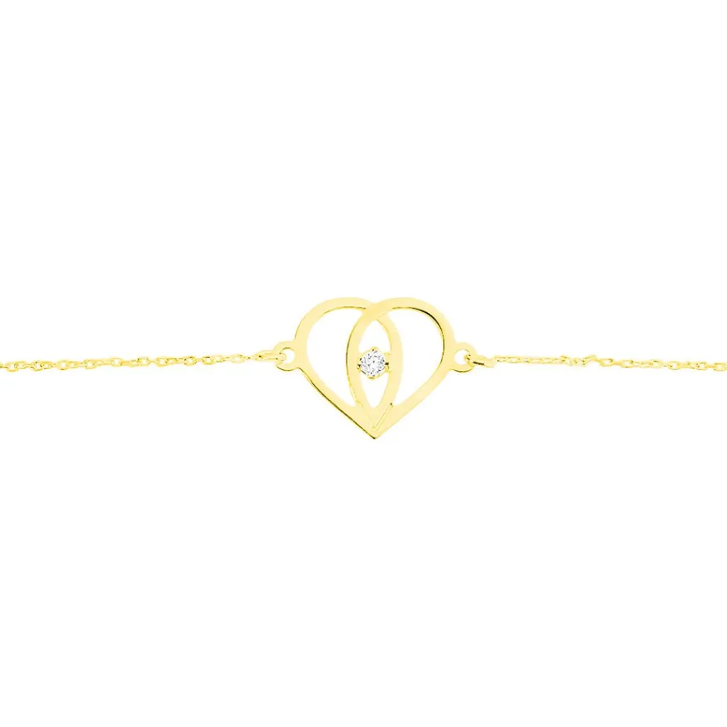 Bracelet Or Jaune 375/1000 C艙ur Croise Et Oxyde De Zirconium 18cm