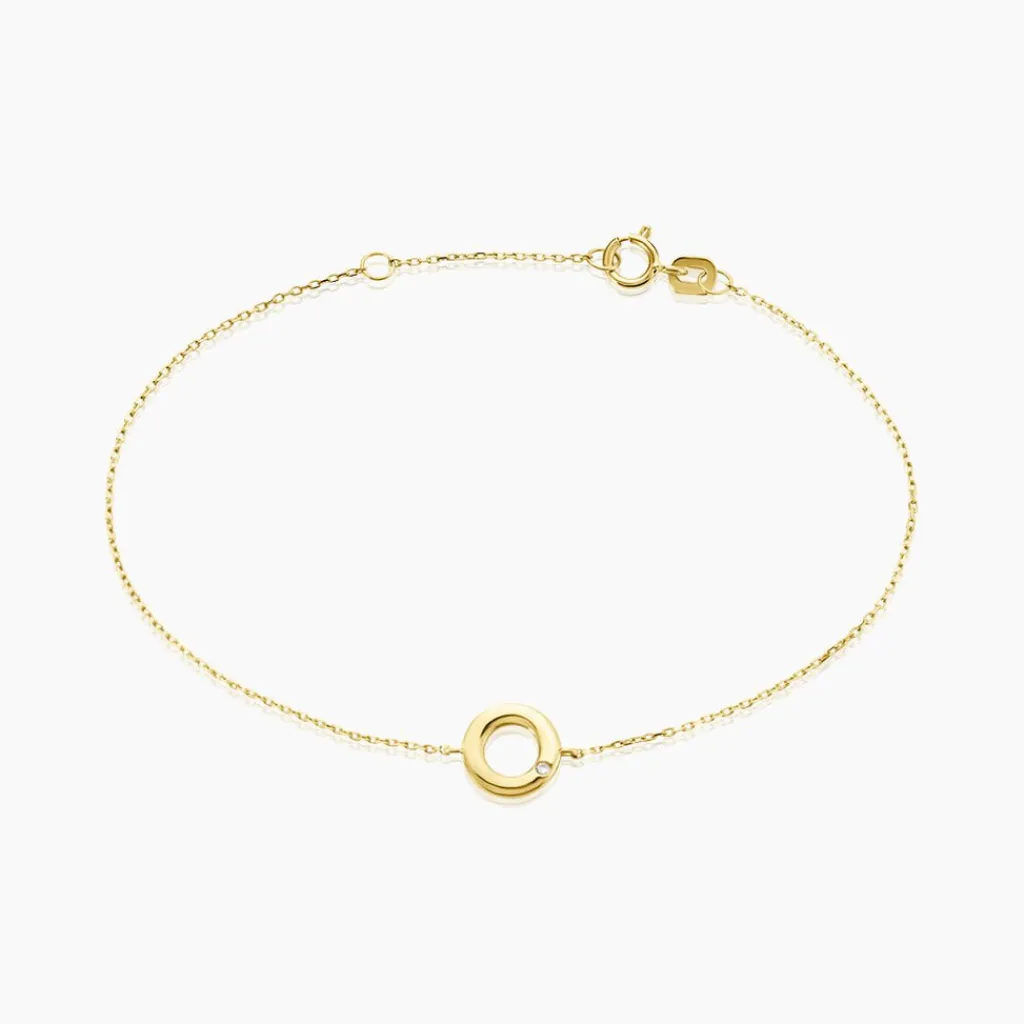 Bracelet Or Jaune 375/1000 Cercle Oxyde De Zirconium 0.015 Cts Serti Pavage Maille Forcat 18cm