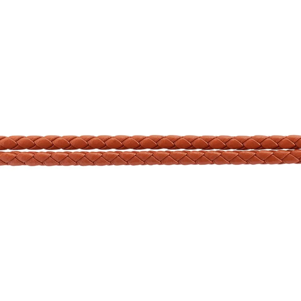 Bracelet Acier Inoxydable Blanc Cuir Orange Double Tours 42cm
