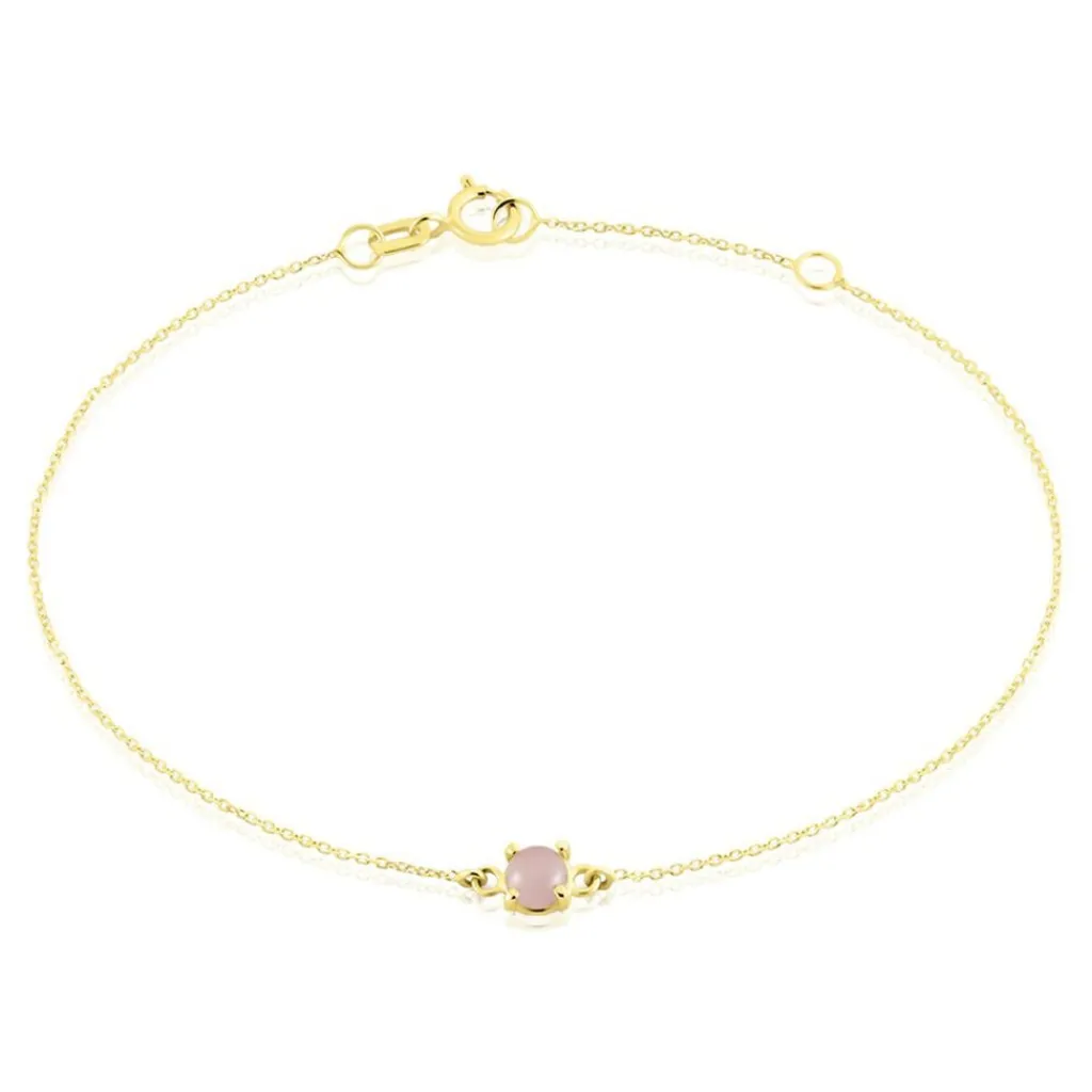 Bracelet Or Jaune 375/1000 Calcedoine Abricot Maille Jaseron 16/18cm