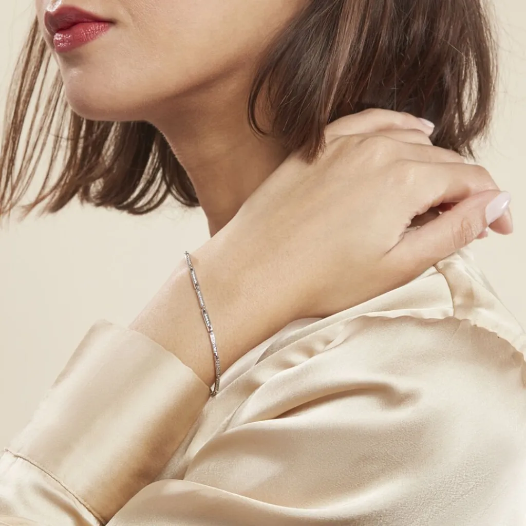 Bracelet Argent 925/1000 Plaques Pavage Oxydes De Zirconium 18cm