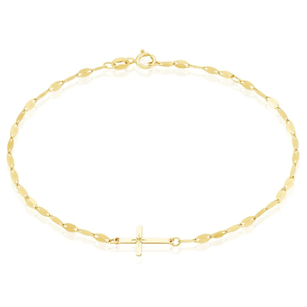 Bracelet Or Jaune 375/1000 Croix Avec Etoile Du Berger Maille Lumina 16+2cm