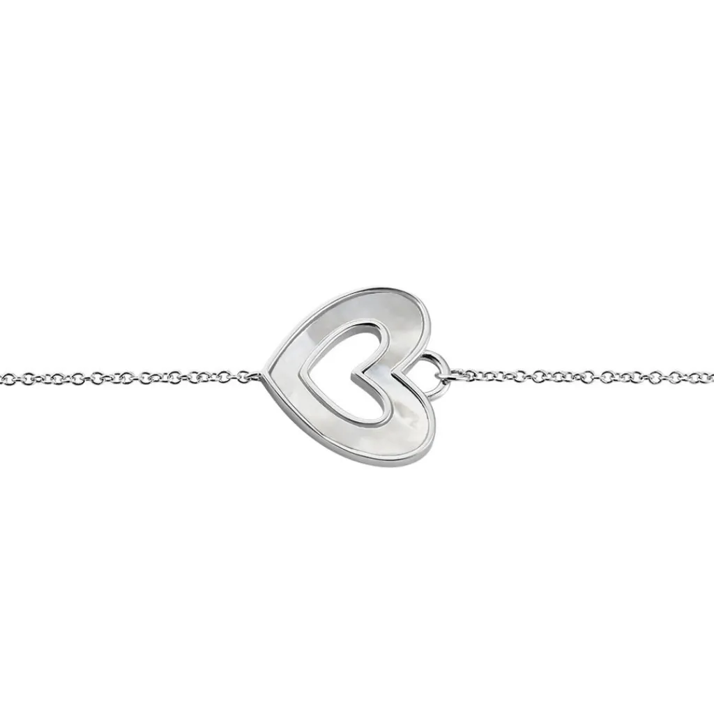 Bracelet Argent Blanc 925/1000 C艙ur Ajouré Nacre Blanche Maille Forçat 19cm