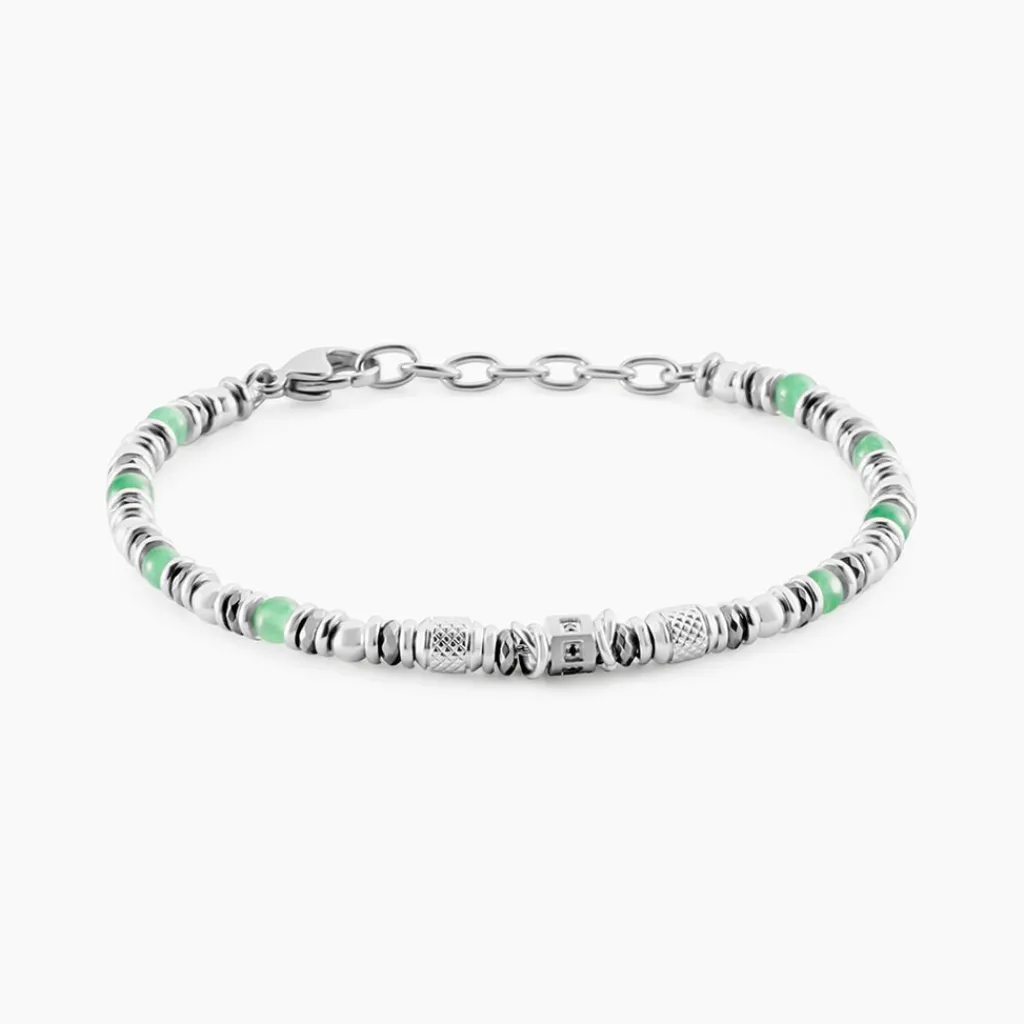 Bracelet Acier Inoxydable Gris Aventurine Verte 4.4mm 21cm